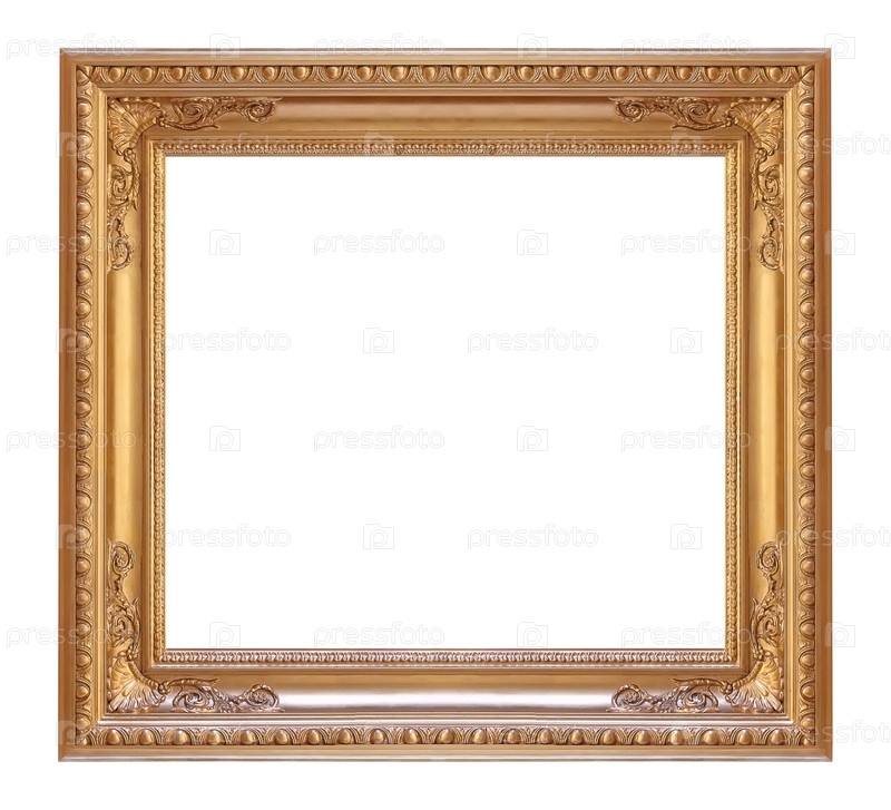Золотая рама для картин, зеркал или фотографий, изолированных на белом фоне