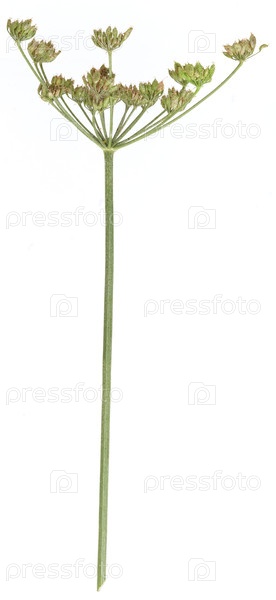 Зеленая ветвь дикого укропа с семенами, выделенными на белом фоне