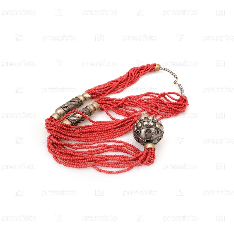 Этнические коралловые бусины изолированы на белом фоне
