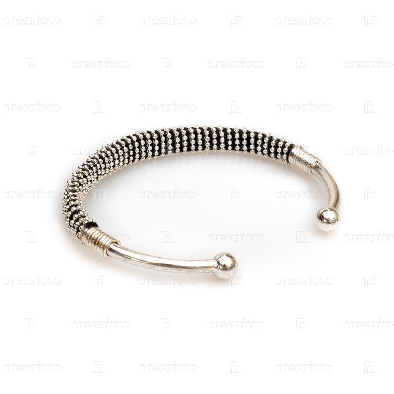 Современный серебряный браслет изолирован на белом фоне