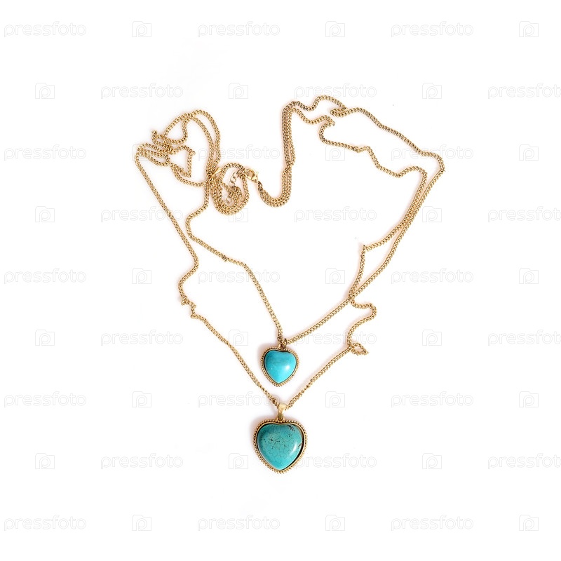 Золотое ожерелье с бирюзовым изолированным на белом фоне