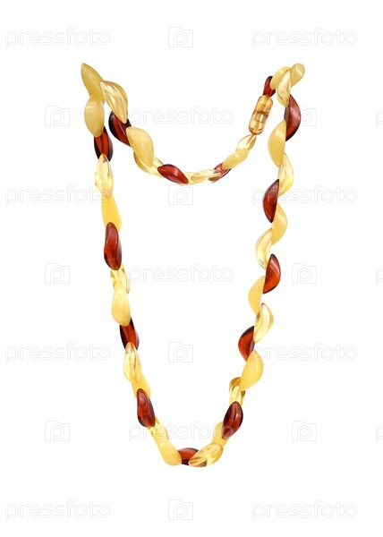 Янтарное ожерелье изолировано на белом фоне