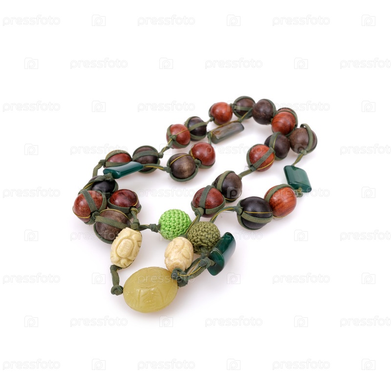 Этнические деревянные бусы, изолированные на белом фоне