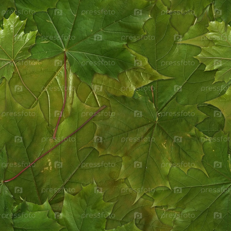 Бесшовный фото рисунок с зелеными кленовыми листьями