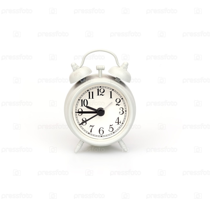 Белый будильник в старом стиле изолирован на белом фоне