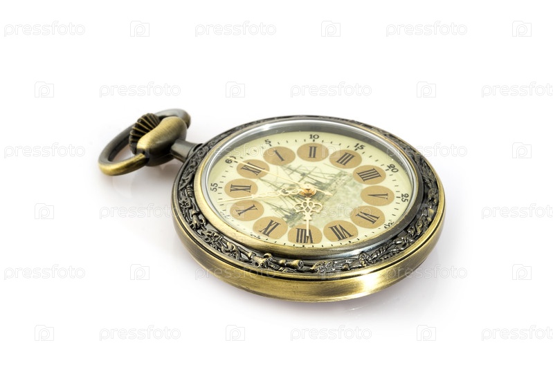 Карманные часы изолированы на белом фоне