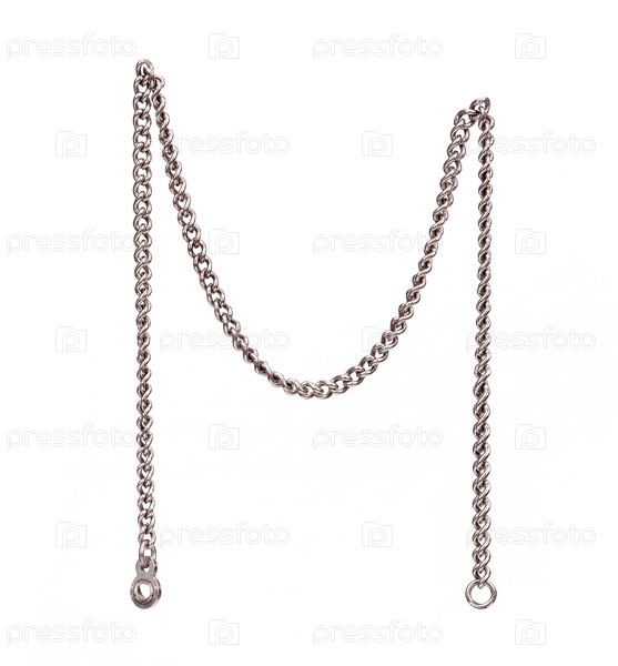Серебряно-металлическая цепочка воротника изолирована на белом фоне