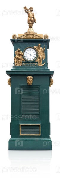 Винтажные уличные бронзовые часы с золотыми фигурами. Элемент дизайна с обрезкой пути