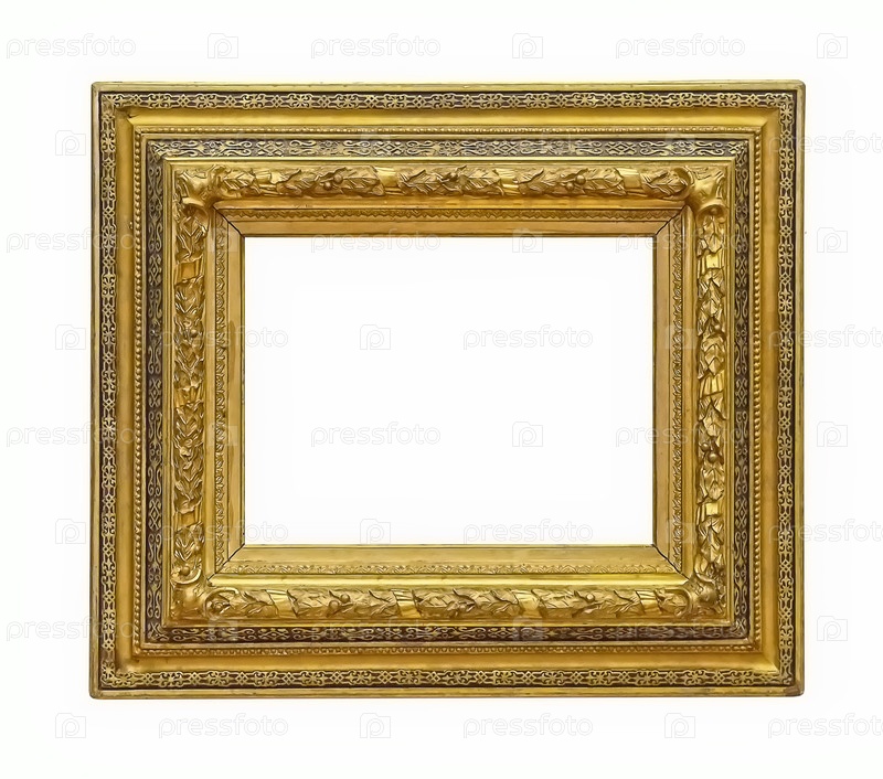 Золотая рама для картин, зеркал или фотографий, изолированных на белом фоне