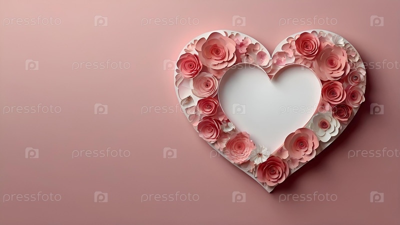 Концепция Дня святого Валентина с розовым сердцем, изображающим Любовь. Стильный дизайн бумажных срезанных цветов. Место для копирования