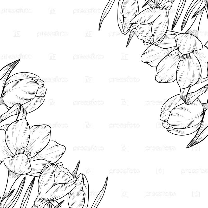 Пасхальный цветочный праздничный элемент декора установлен. Векторная иллюстрация в стиле чернил. Выгравированы очертания яиц, узлов, весенних садовых цветов и корзины. Монохромная графика в рисованном стиле линии для букетов, венков, открыток, поздравлен