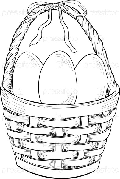 Пасхальный цветочный праздничный элемент декора установлен. Векторная иллюстрация в стиле чернил. Выгравированы очертания яиц, узлов, весенних садовых цветов и корзины. Монохромная графика в рисованном стиле линии для букетов, венков, открыток, поздравлен