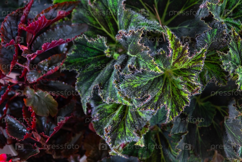 Фон листьев разных сортов декоративных бегоний