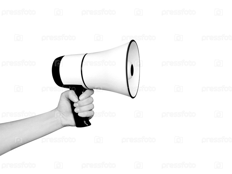 Рука коллажа с мегафоном. Новости социальных сетей. Акция по продвижению. Концепция коммуникации, общественное мнение, публичные выступления, общество, СМИ. Послание