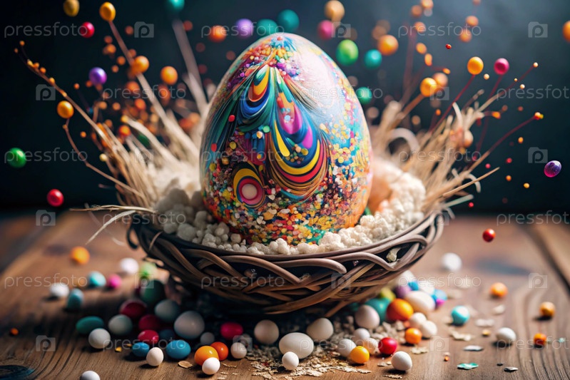 Пасхальный баннер. Концепция яркого пасхального праздника. Творческое абстрактное красочное пасхальное яйцо. Взрыв красок