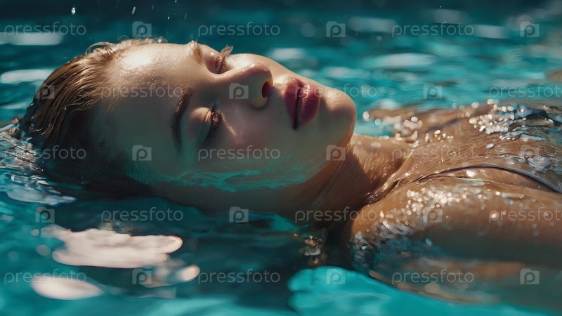 Близко. Молодая красивая женщина в бирюзовом бассейне. Концепция здорового образа жизни, релаксации, релаксации, туризма, косметических спа-процедур в спа-салоне красоты, самолюбия