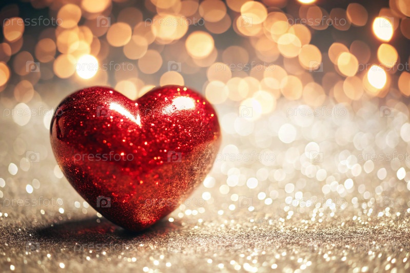 Знамение на День святого Валентина. Красное сердце с праздничными огнями по бокам на заднем плане. Макет пригласительного билета на вечеринку ко Дню святого Валентина, место для копирования