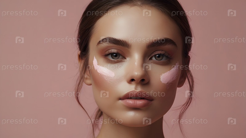 Красивый портрет естественной девушки на нейтрально-розовом фоне. Косметология, уход за кожей, уход за лицом и макияж