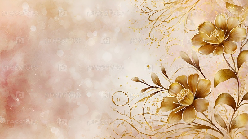 Международный женский день. Праздник приходится на 8 марта. Баннер, флаер. Праздничный, золотой цветочный фон с