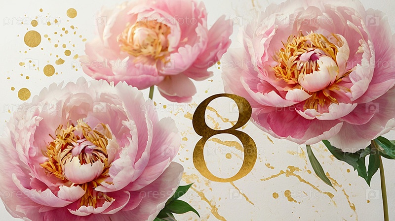 Пионы — это летние ароматные цветы. Красивый цветочный фон с красивым эффектом боке. Нежные розовые почки пиона на белом акварельном фоне с золотыми жилками