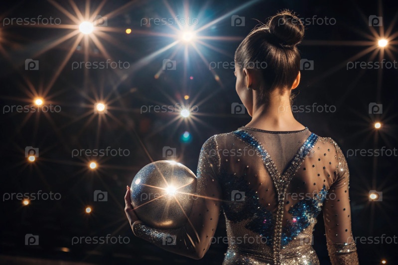 Ритмическая гимнастика крупным планом красивой гимнастки с мячом в центре внимания. Олимпийский вид спорта