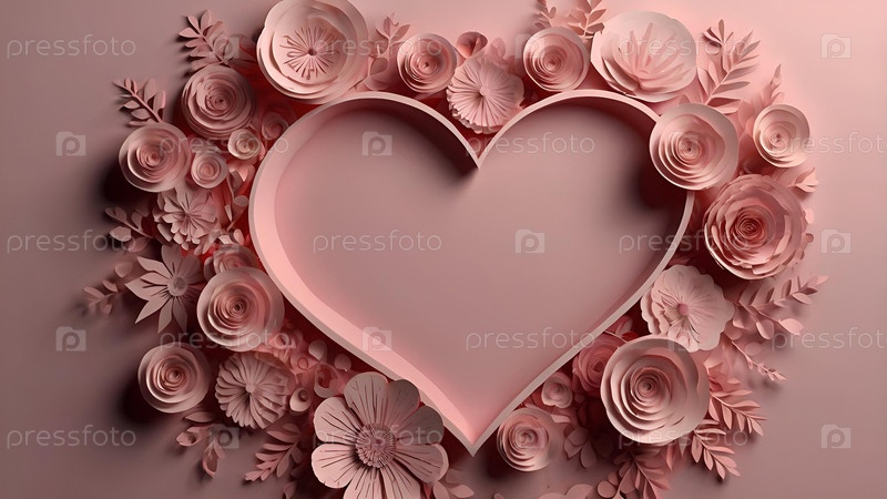 Концепция Дня святого Валентина с розовым сердцем, изображающим Любовь. Стильный дизайн бумажных срезанных цветов. Место для копирования