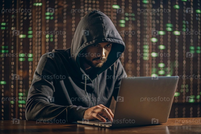 Хакер работает над ноутбуком, цифровыми кодами на виртуальном фоне. Взлом и защита онлайн-данных. Цифровые технологии, разработка программного обеспечения