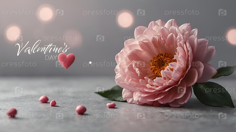 Минимализм. Красивый бледно-розовый цветок на сером фоне. Концепция Дня святого Валентина, Дня матери и Женского дня. Копия пространства для текста