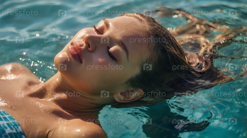 Близко. Молодая красивая женщина в бирюзовом бассейне. Концепция здорового образа жизни, релаксации, релаксации, туризма, косметических спа-процедур в спа-салоне красоты, самолюбия