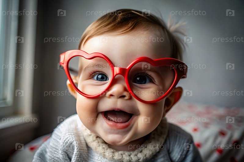 Симпатичная маленькая девочка в стильных красных очках в форме сердца, весело проводящая День святого Валентина