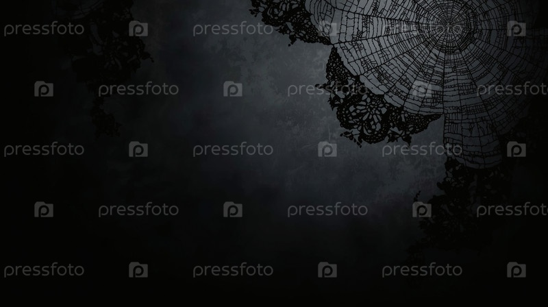 Справочно, знамя Хэллоуина. Силуэт черной кружевной паутины на черном фоне