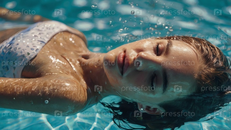 Близко. Молодая красивая женщина в бирюзовом бассейне. Концепция здорового образа жизни, релаксации, релаксации, туризма, косметических спа-процедур в спа-салоне красоты, самолюбия
