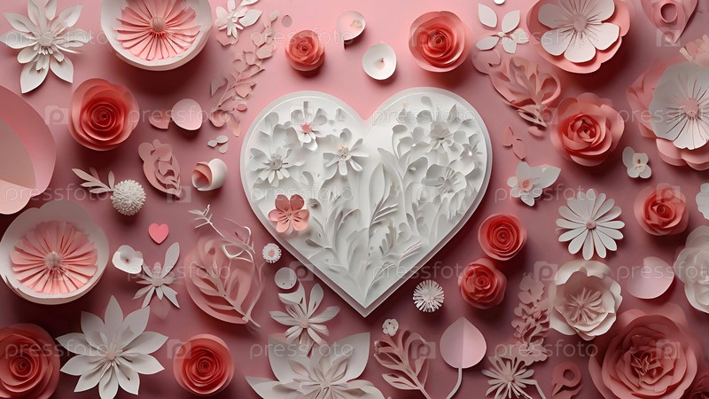 Концепция Дня святого Валентина с розовым сердцем, изображающим Любовь. Стильный дизайн бумажных срезанных цветов. Место для копирования