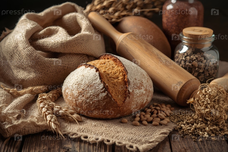 Свежий, вкусный хлеб крупным планом. Свежеиспеченный кислый хлеб с золотой коркой на деревянном фоне. Контекст пекарни с вкусным хлебом. Кондитерские изделия