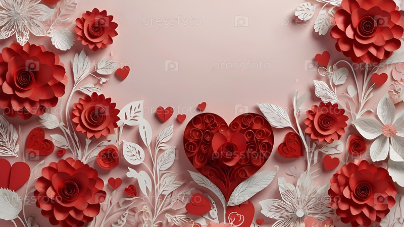 Концепция Дня святого Валентина с красным сердцем, изображающим Любовь. Стильный дизайн бумажных срезанных цветов. Место для копирования