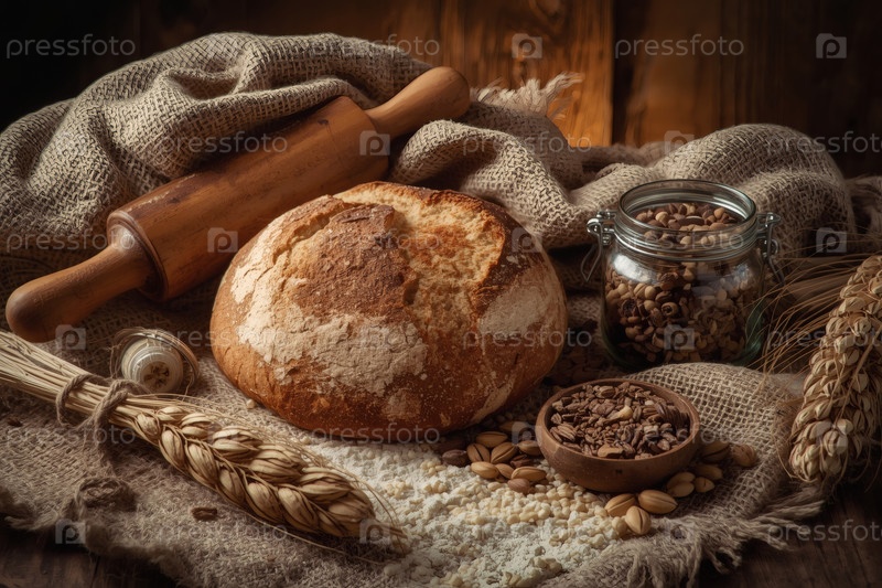 Свежий, вкусный хлеб крупным планом. Свежеиспеченный кислый хлеб с золотой коркой на деревянном фоне. Контекст пекарни с вкусным хлебом. Кондитерские изделия