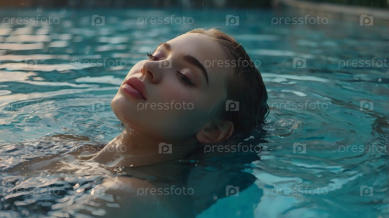 Близко. Молодая красивая женщина в бирюзовом бассейне. Концепция здорового образа жизни, релаксации, релаксации, туризма, косметических спа-процедур в спа-салоне красоты, самолюбия