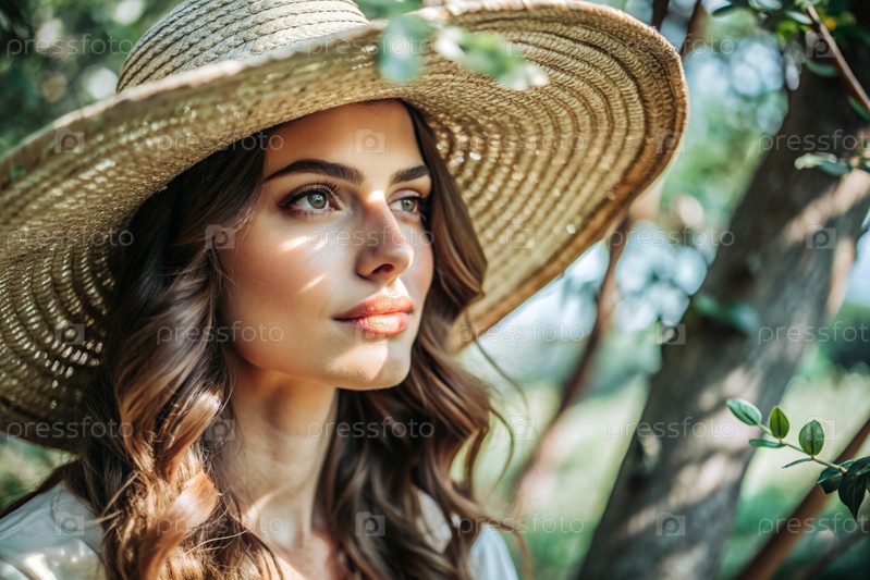 Летний отдых на пляже, крупный план красивой женщины в соломенной шляпе. Летнее время. Отдых и отдых, место для копирования