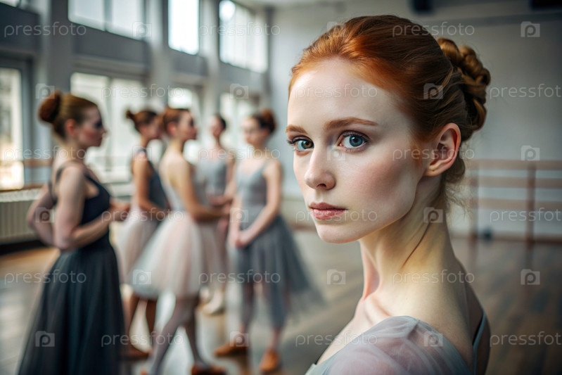 Портрет красивой молодой балерины в балетном зале. Сияние русского балета, балерина в туту на фоне репетиционного зала