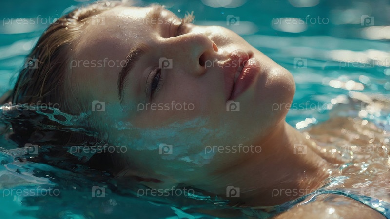 Близко. Молодая красивая женщина в бирюзовом бассейне. Концепция здорового образа жизни, релаксации, релаксации, туризма, косметических спа-процедур в спа-салоне красоты, самолюбия