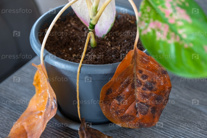 Проблемы при выращивании на листе аглаонемы – листья, пораженные черной гнилью, перелив растения, гниение корней