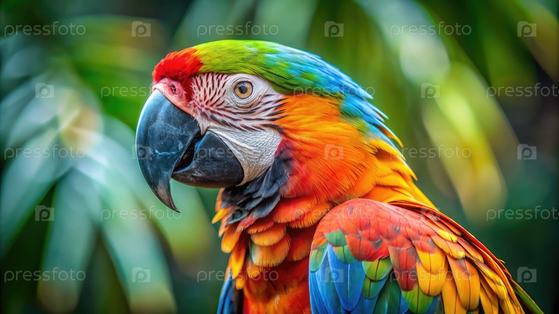 Красочный попугай стоит перед листьями. Генерирующий ИИ