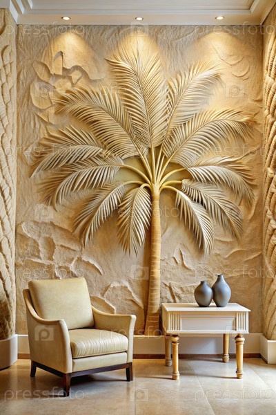 Декорация стены пальмового дерева в гостиной. Генерирующий ИИ