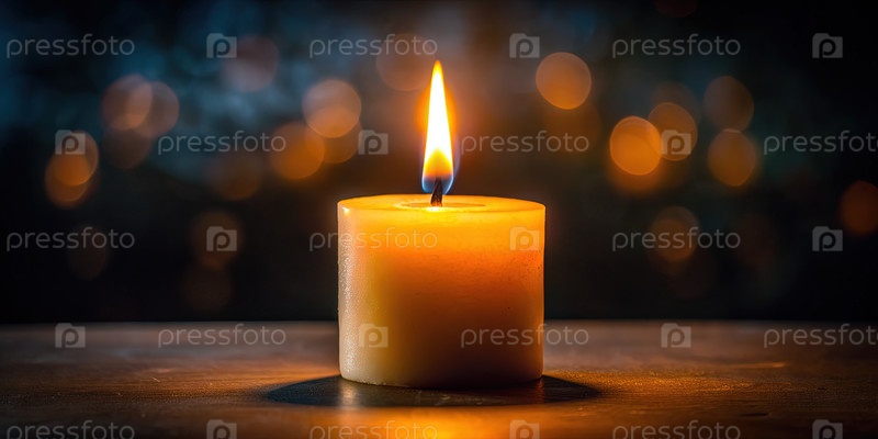 Свеча на деревянном столе. Генерирующий ИИ