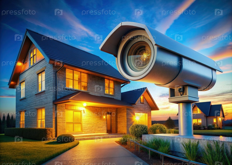 Жилой дом с камерой безопасности. Генерирующий ИИ