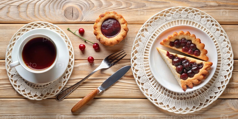 Столик с двумя тарелками пирога и чашкой чая. Генерирующий ИИ