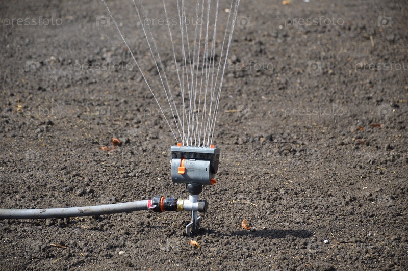 Автоматический спринклер для полива газона или сада. поливать землю c семенами травы. кормление семян влагой перед прорастанием