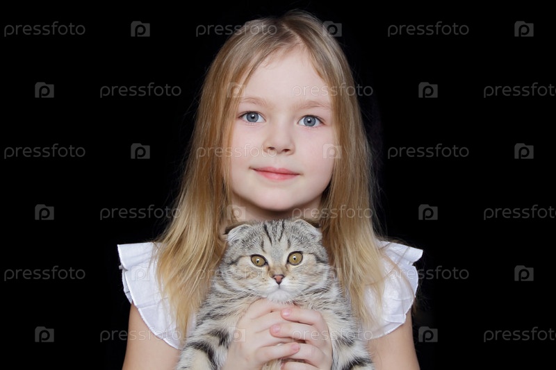 Девушка с серым котенком