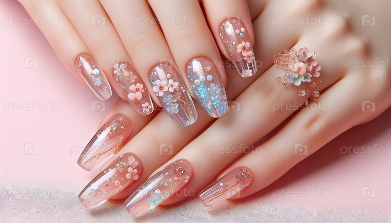 Корейский дизайн стеклянных ногтей, Сгенерированное изображение