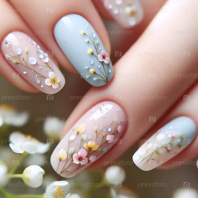 Свежий весенний цветочный маникюр, созданный Ай